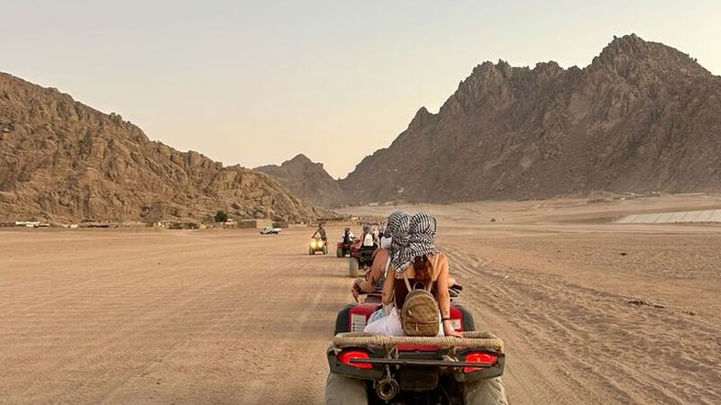 Sabah kahvaltımızın sonrasında öğleden sonra otelinizden alınarak başlayacak aksiyon dolu ATV Quad motorlar ile çöl kumlarının arasında adeta dans edecek, muhteşem gün batımında fotoğraf molaları vererek anı ölümsüzleştireceksiniz. Sina Çölünde Deve Turu yapmadan olmaz tabiki!...(eksta)